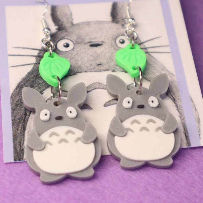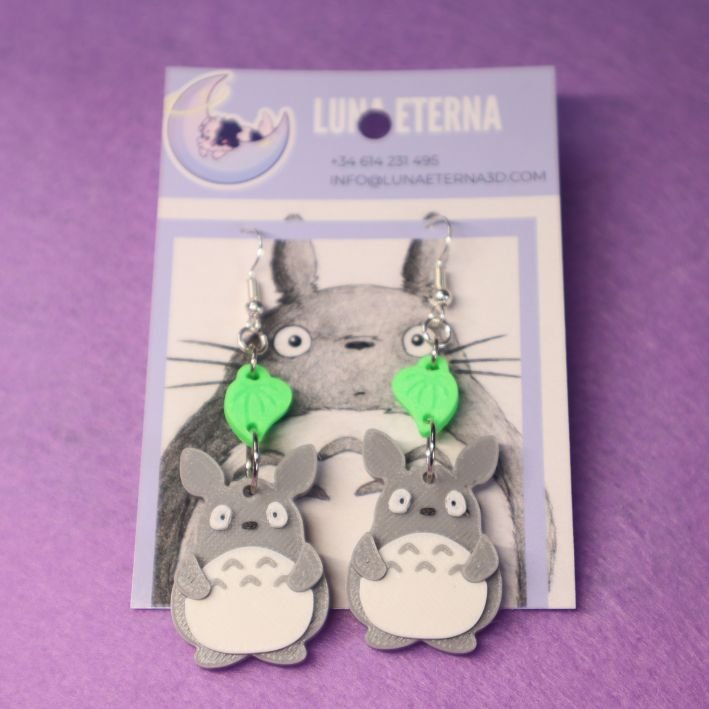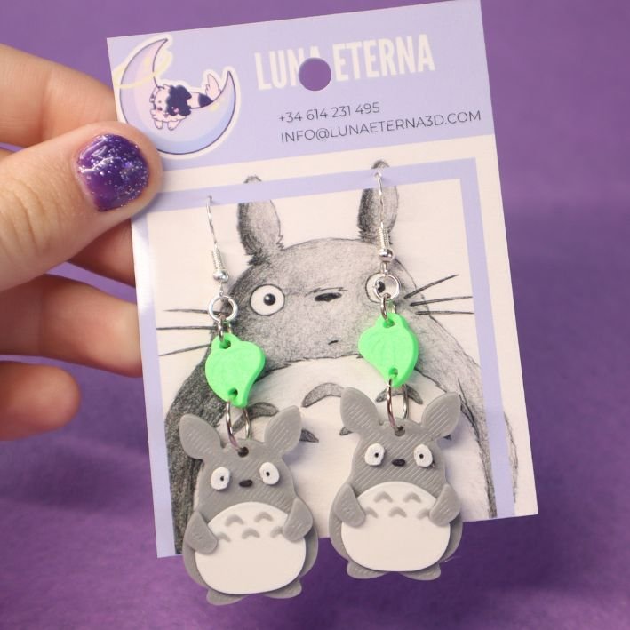 Pendientes de Totoro en impresión 3D. Ligeros, adorables y con ganchos hipoalergénicos. Ideales para fans de Studio Ghibli.
