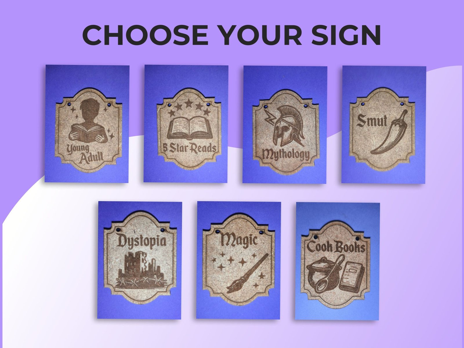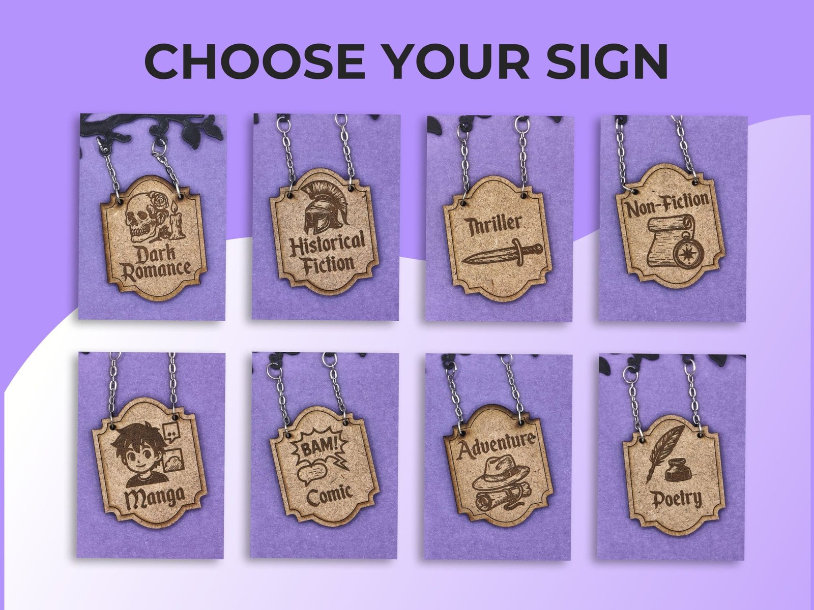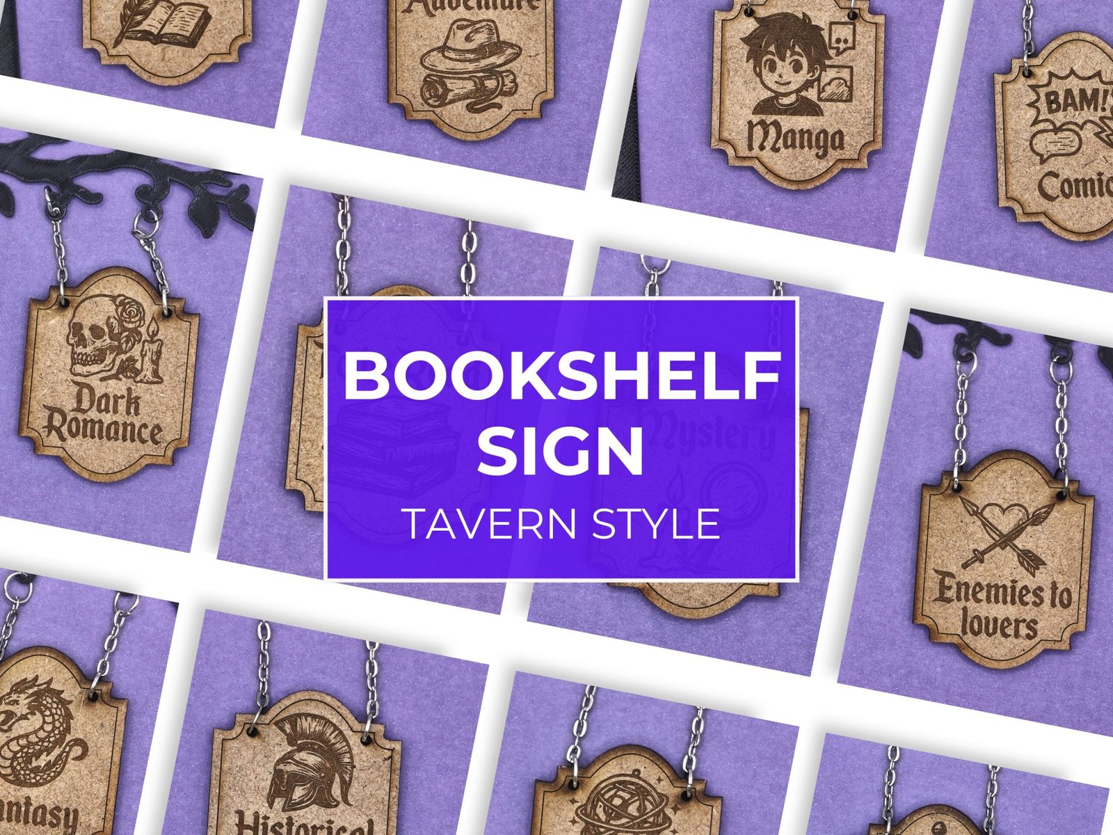 ¿Quieres darle vida a tu estantería y organizar tus libros con estilo? Te presento mis letreros de géneros literarios al estilo taberna medieval, diseñados por mí con mucho cuidado y atención al detalle. Cada pieza combina un toque medieval encantador con funcionalidad, convirtiéndose en un elemento único para tu biblioteca o rincón de lectura.