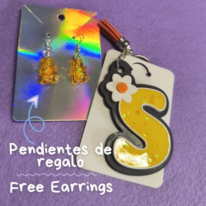 Llavero de inicial personalizada en 3D con resina en el color que elijas + pendientes de osito de regalo a juego. Un detalle único y original.