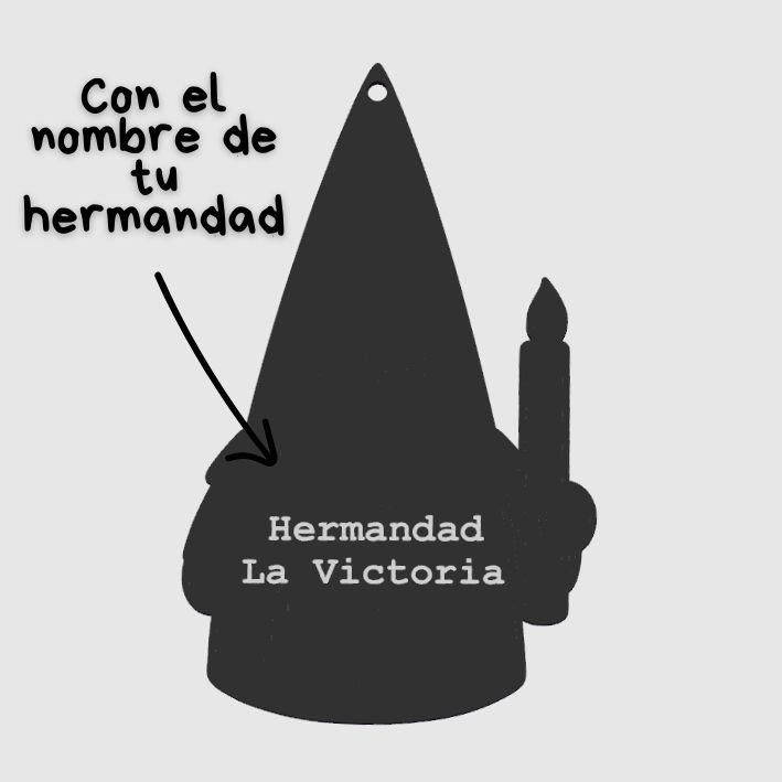 Este llavero nazareno cofrade personalizado es un detalle original, simpático y muy representativo de la Semana Santa. Es perfecto para llevar siempre contigo un pequeño recuerdo de tu hermandad o para regalar a familiares, amigos y compañeros cofrades. Su diseño divertido y reconocible lo convierte en un accesorio que gusta a todas las edades y que destaca fácilmente en llaves, mochilas o bolsos.