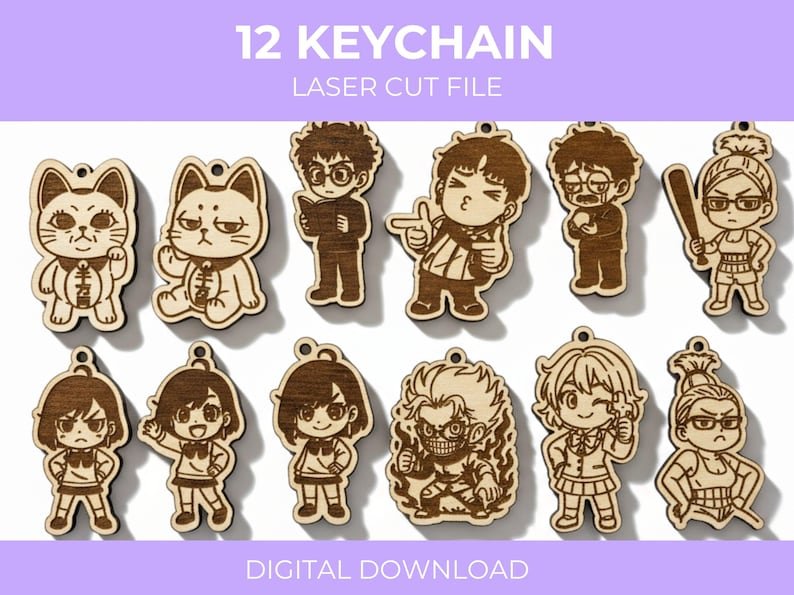 Crea tus propios llaveros anime DanDaDan con este archivo digital de corte láser 🎶⚡. Incluye formatos .SVG y .LBRN listos para usar en máquinas de grabado y corte. Perfecto para trabajar en acrílico, madera, MDF y metacrilato.