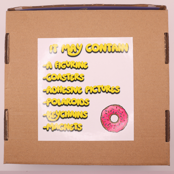 LaCaja Sorpresa puede contener hasta diez artículos hechos a mano, lo que hace que cada caja sea diferente y exclusiva. Entre los posibles objetos se incluyen figuritas coleccionables, posavasos, imanes, llaveros, pegatinas adhesivas y polaroids decorativas. Cada pieza utiliza ilustraciones originales o reinterpretaciones creativas de personajes como Homer, Marge, Bart, Lisa y otros habitantes inolvidables de Springfield. Los colores vivos, los acabados detallados y los materiales de calidad convierten cada objeto en un pequeño tesoro para exhibir, usar o coleccionar.