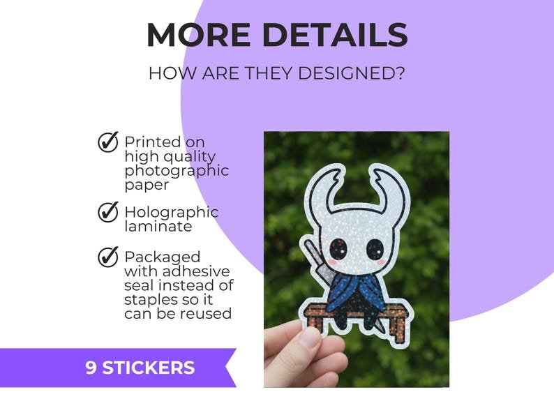 Añade un toque mágico y adorable a tu día a día con este pack de 9 pegatinas holográficas de Silksong inspiradas en tu videojuego favorito. He diseñado este set pensando en fans del estilo japonés, coleccionistas de stickers y amantes de los detalles bonitos que hacen especial cualquier objeto cotidiano.