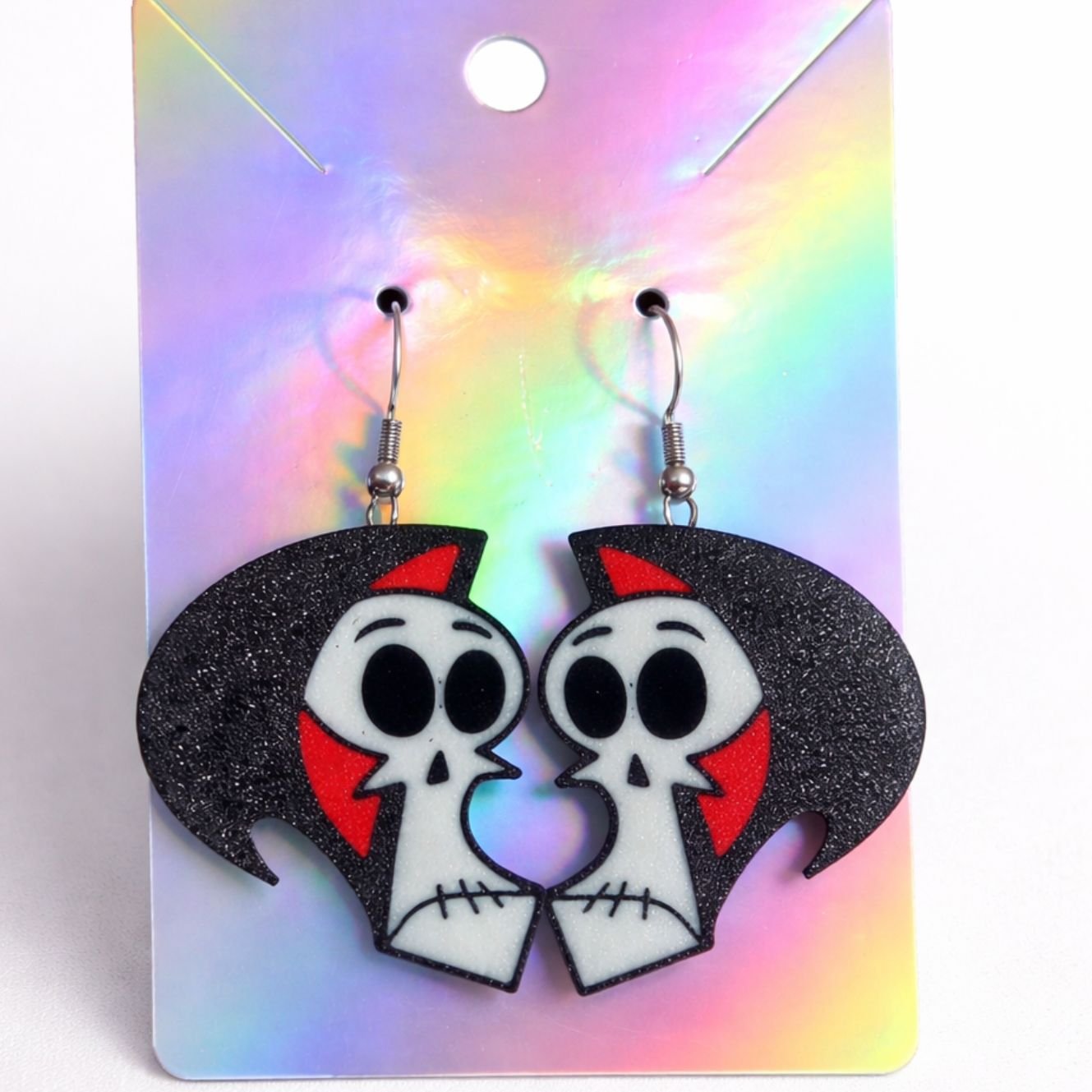 En definitiva, estos pendientes de calavera de Las aventuras de Billy y Mandy impresos en 3D combinan diseño, ligereza y comodidad. Son hipoalergénicos, resistentes y llenos de actitud, un complemento perfecto para quienes buscan accesorios diferentes, con humor negro y mucha personalidad.
