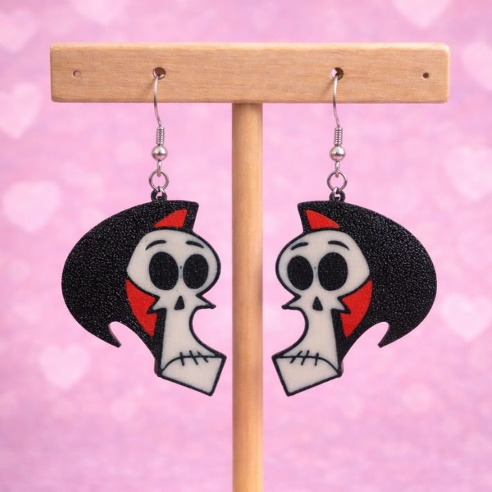 Estos pendientes de calavera inspirados en Las aventuras de Billy y Mandy impresos en 3D son un accesorio original, oscuro y lleno de personalidad, pensado para fans de la animación clásica y de los complementos con carácter. El diseño está inspirado en la icónica calavera de la serie, un símbolo inconfundible del humor negro y el estilo irreverente que la convirtió en una de las producciones más recordadas de Cartoon Network.