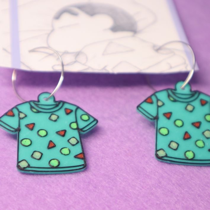 Dale un toque divertido y nostálgico a tu estilo con estos pendientes inspirados en la icónica camiseta de Shin Chan. Un diseño reconocible al instante que captura el humor y la esencia traviesa del personaje.