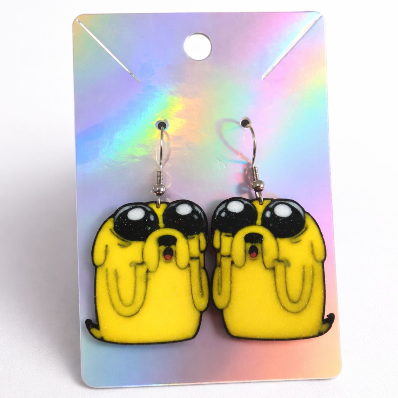 Estos pendientes de Jake el Perro impresos en 3D son un accesorio original, divertido y lleno de personalidad, inspirados en uno de los personajes más icónicos de la animación moderna: Jake el Perro, de la serie Hora de Aventuras. Diseñados para fans de la serie y amantes de los complementos creativos, estos pendientes son perfectos para expresar tu estilo con humor, color y un toque nostálgico.