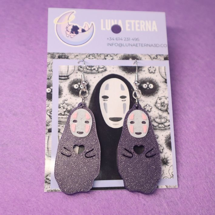 Pendientes de Sin Cara (El Viaje de Chihiro) fabricados en impresión 3D. Ligeros, brillantes y con ganchos hipoalergénicos. Un toque mágico para tu look.