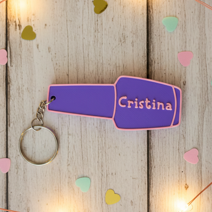 Este salvauñas destaca por su personalización con nombre, integrado directamente en la pieza. No es una pegatina ni un añadido posterior, sino parte del propio diseño, lo que garantiza durabilidad y un acabado limpio. Esto lo convierte no solo en un utensilio funcional, sino también en un detalle único y personal.